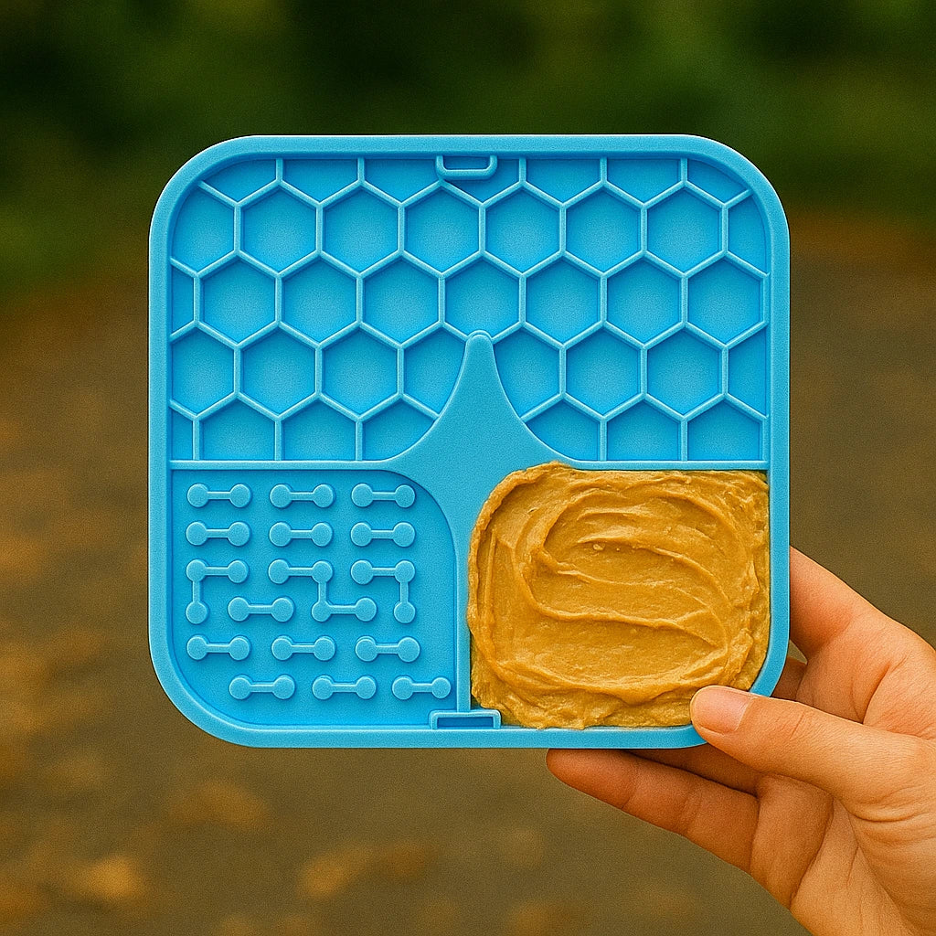 Denna smart designade slickmatta hjälper hundar och katter att äta långsammare, minska stress, och njuta av varje tugga. Perfekt för våtfoder, yoghurt, godis eller jordnötssmör – samtidigt som det stimulerar din pälsklings sinne.