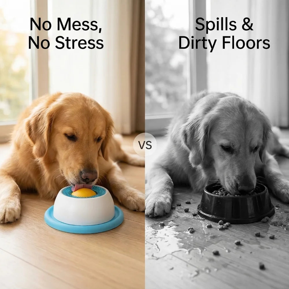 • Minskar stress & rastlöshet – slickandet har en naturligt lugnande effekt • Saktar ner ätandet – hjälper till att förebygga hetsätning och magproblem • Interaktiv aktivering – vätska eller mjuk mat lyfts upp när bollen rör sig • Stabil & halkfri bas – står stadigt på golvet utan spill • Storlek: 20 cm diameter – passar både hundar och katter