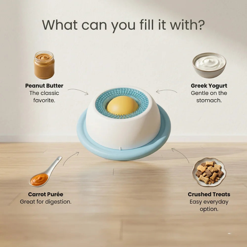 Gör måltiden lugnare och mer stimulerande för ditt husdjur. Den här smarta slickbollen kombinerar lek och utfodring – perfekt för att minska stress och skapa en mer balanserad vardag.